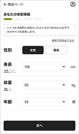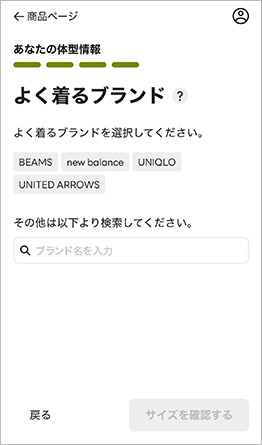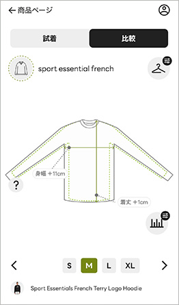 アパレルの最適なサイズがわかるオンライン試着をサポート。