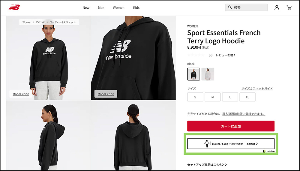 unisizeを使用いただき、アパレルのサイズに悩まず快適なショッピングをお楽しみください